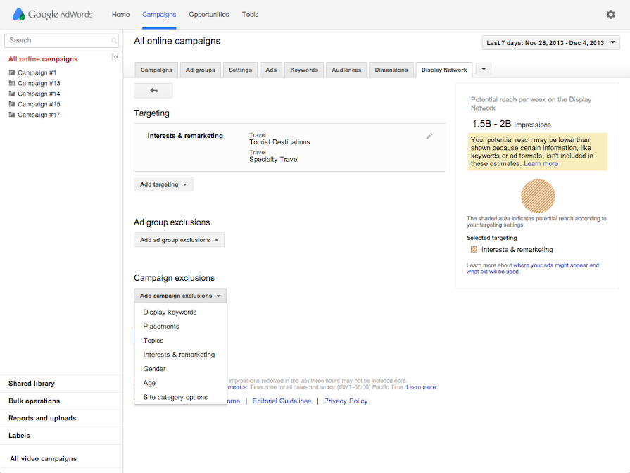 Just as you can target pages in the Google Display Network about certain subjects – like cars or music – you can also exclude by topic to keep your ads off webpages whose themes aren't relevant to your customers.