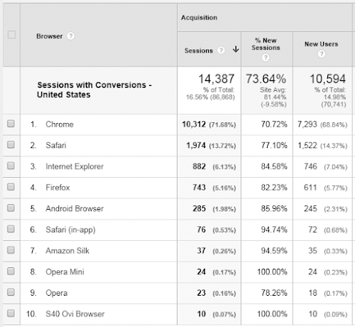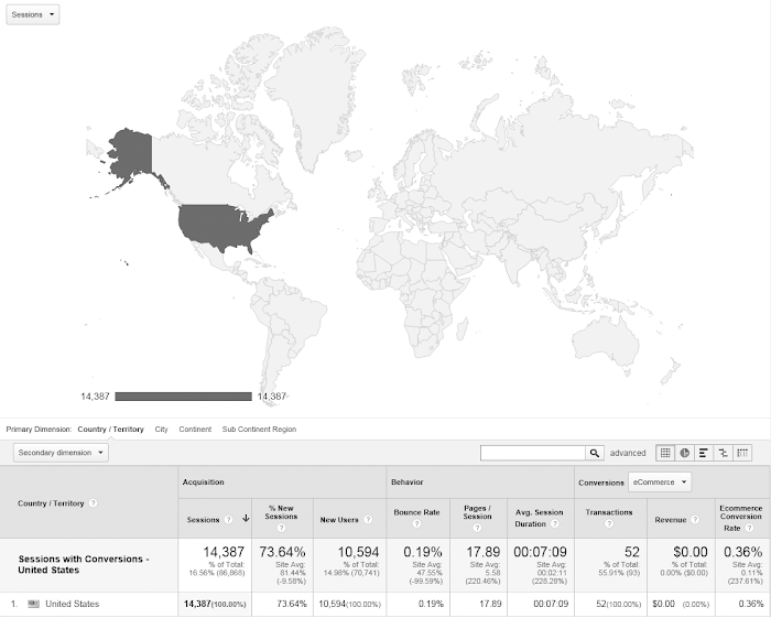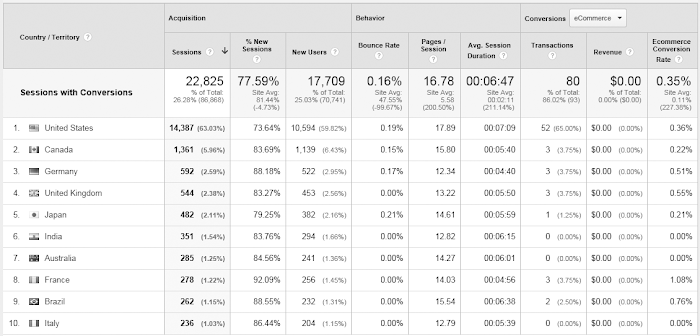 Trong trường hợp này, Hoa Kỳ có số lượng phiên có chuyển đổi nhiều hơn gấp 10 lần quốc gia thành công thứ hai.