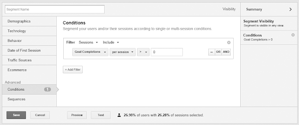 Để xác định những người dùng này, tạo phân đoạn có bộ lọc Điều kiện như sau: