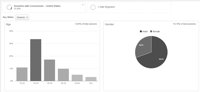 Có thể người dùng 25-34 vốn có khuynh hướng mua hàng trực tuyến hơn hay sản phẩm hoặc dịch vụ của bạn có sức hấp dẫn đặc thù với nhóm này. Hoặc có thể hoạt động tiếp thị của bạn tập trung hơn vào người dùng trẻ hơn. Những thống kê này cũng có thể cho thấy rằng trang web của bạn hướng tới đối tượng trẻ hơn, tinh thông về mặt kỹ thuật hơn. Bạn không thể nói chính xác những gì đang diễn ra chỉ từ thông tin này, nhưng rõ ràng cho đến bây giờ nhóm nhân khẩu học trẻ nhất đặc biệt có giá trị đối với bạn và các nhóm nhân khẩu học khác có thể ít giá trị hơn khi độ tuổi tăng.