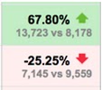 The values in the table show the percentage by which your property outperforms or underperforms the benchmark for each metric. A positive value (for example, 67.80%) indicates that your property outperforms the benchmark. A negative value (for example, -25.25%) indicates that your property underperforms the benchmark.