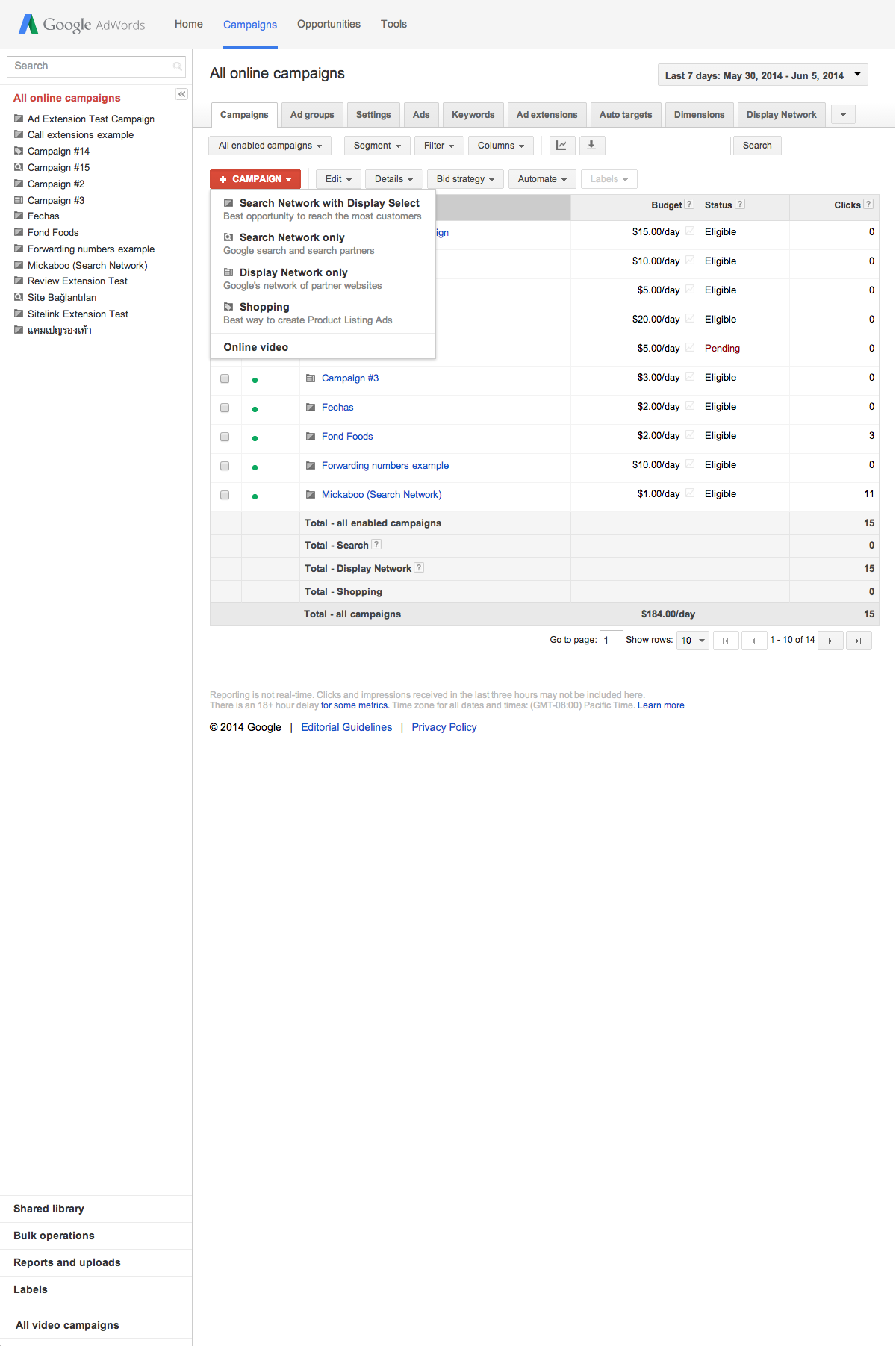 Hoặc bạn có thể sao chép và dán nhanh chiến dịch hiện tại từ trình đơn thả xuống "Chỉnh sửa" trên tab "Chiến dịch". Chỉ cần chọn hộp bên cạnh chiến dịch mà bạn muốn sao chép, chọn "Sao chép" từ menu thả xuống "Chỉnh sửa", sau đó chọn "Dán" từ menu thả xuống để tạo chiến dịch mới.