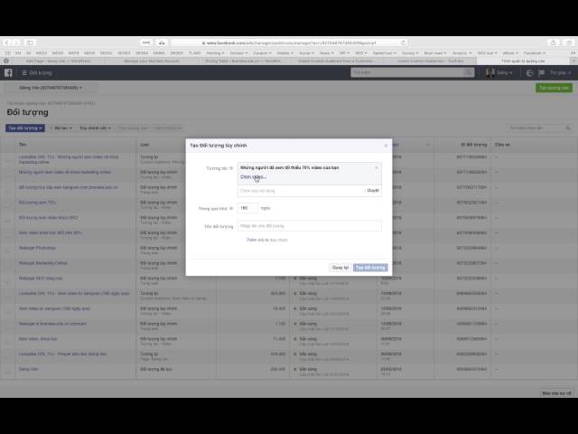 Bước 02: Tiến hành quảng cáo tiếp thị lại cho đối tượng đã xem video trên về nội dung liên quan trực tiếp đến sản phẩm của bạn. Lưu ý: để tiến hành tiếp thị lại thì bạn cần tạo tập dữ liệu đối tượng người đã xem video phía trên của bạn hoặc đã truy cập vào website của bạn. Xem hướng dẫn dưới đây bạn nhé: