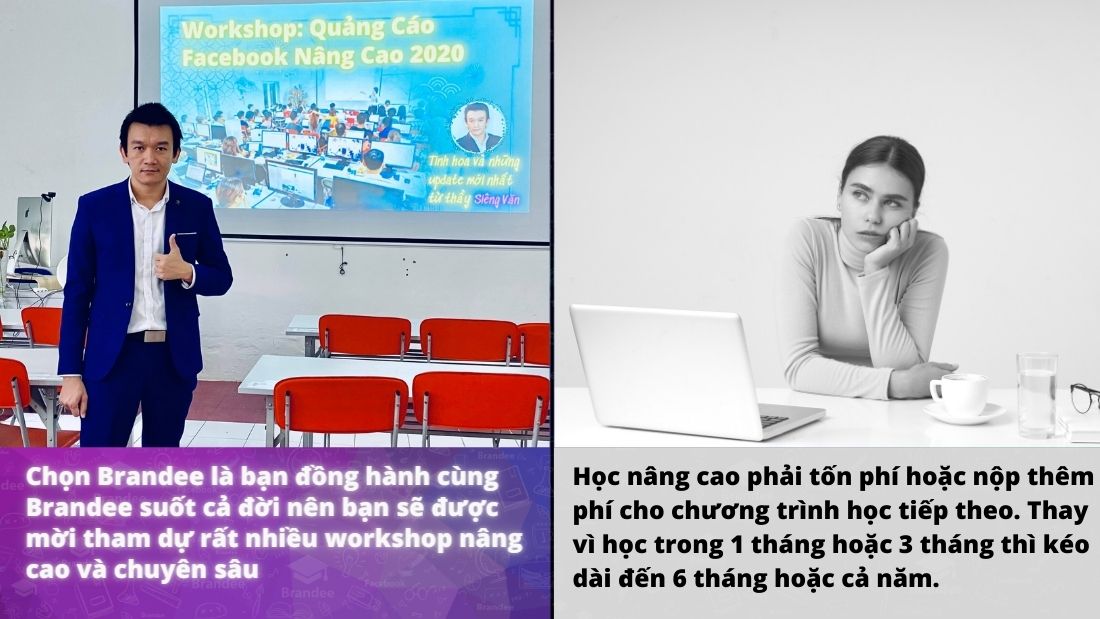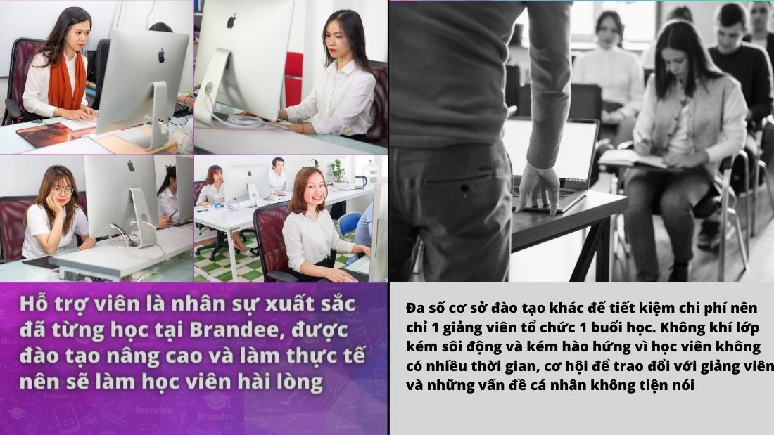 So với các đơn vị ở HCM (học phí tại imta.edu.vn), Hà Nội (xem chi phí tại Á Âu) thì chi phí tại Brandee chỉ bằng 1/2, 1/3 nhưng lại cho phép học viên lựa chọn học cả khóa để chất lượng tốt nhất, học linh hoạt theo từng học phần, hay theo hình thức học.