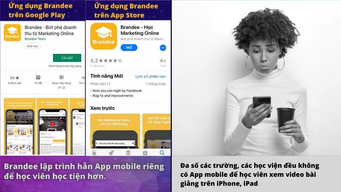 Xuất thân từ Đại Học Đà Nẵng từ 2015, sau 2 năm Brandee đã trở thành đơn vi dẫn đầu tại Đà Nẵng và sau 8 năm Brandee đã khai giảng khóa Digital Marketing thường xuyên tại Đà Nẵng, Huế, Quy Nhơn vượt qua các thương hiệu từ Hà Nội, HCM để trở thành học viện được người miền trung tin chọn. Sang đầu 2019, thì Brandee là học viện Marketing duy nhất đưa kỹ thuật học từ xa - qua LiveStream vào giảng dạy và mở rộng thị trường đến Hồ Chí Minh, các tỉnh phía nam. Giúp học viên có thể lựa chọn học ở trên lớp hoặc học ở nhà qua Livestream sắc nét (Xem chất lượng video). Đến giữa 2022, Brandee tổ chức Khoá Marketing tại Huế, Quy Nhơn và vượt qua các đơn vị địa phương để mang đến một chương trình được nhiều doanh nhân Huế , Quy Nhơn lựa chọn. Với kinh nghiệm 88 khóa học, gần 9 năm đào tạo Digital Marketing chất lượng cao, cùng đội ngũ tận tâm, hết lòng vì học viên Brandee cam kết mang đến cho học viên một chương trình 3 tốt. Chất lượng tốt - Hỗ trợ lâu dài - Chi phí tốt dễ tiếp cận. Bạn hãy đọc review và chát với vài học viên cũ Brandee để nghe các bạn ấy cảm nhận về việc học tại Brandee như thế nào bạn nhé 😊. https://www.facebook.com/brandee.edu.vn/reviews/