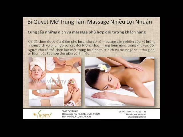 Dịch vụ massage tiếp tục phát triển mạnh ở Việt Nam, và trong số đó loại hình dịch vụ massage tại nhà cũng đang được nhiều người lựa chọn kinh doanh. Để có thể đi theo hướng này, bạn cần tham gia một khóa hóa về các liệu pháp trị liệu, và có giấy phép/giấy chứng nhận được cấp để tạo uy tín hơn cho cơ sở của mình.